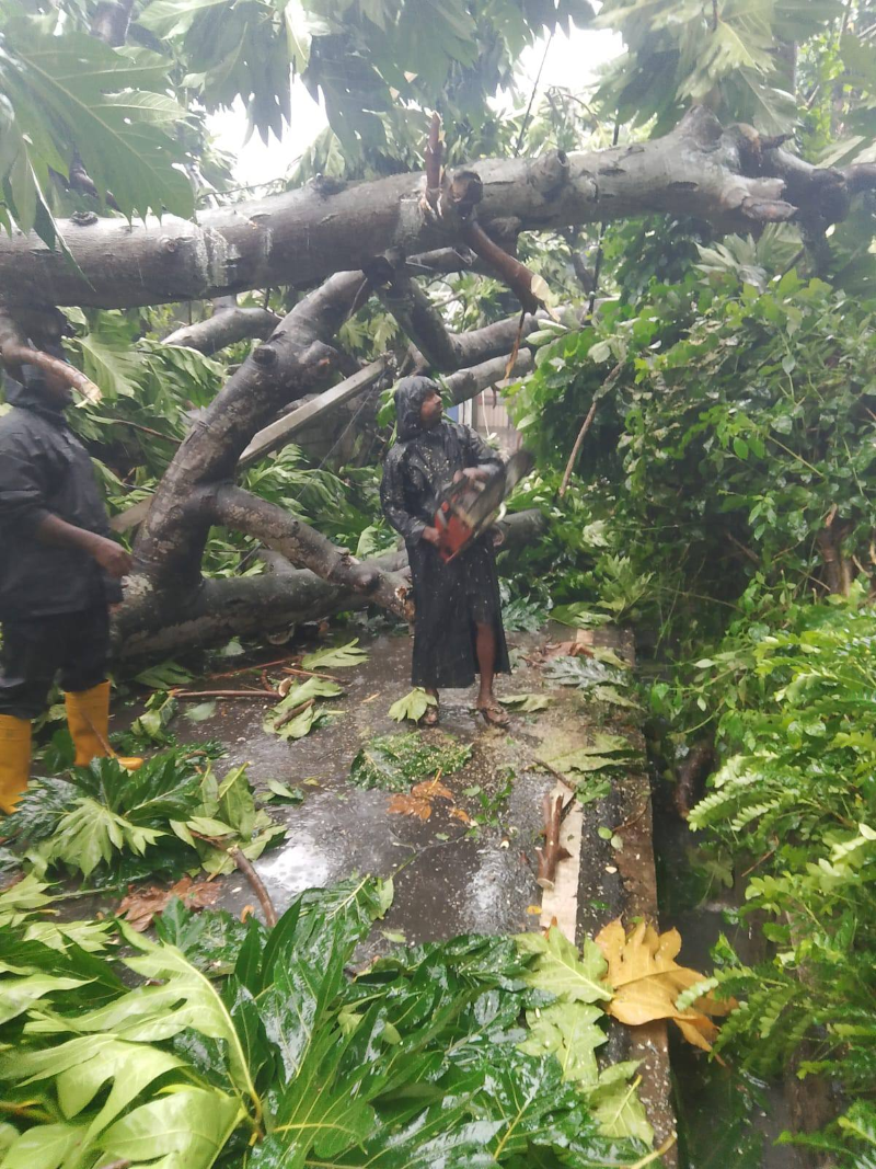 අයහපත් කාලගුණ තත්වය නිසා අනතුරුදායක ලෙස හා මාර්ග අවහිර වන ලෙස වැටී තිබු ගස් කපා ඉවත් කිරිම