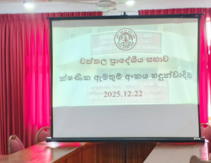 ක්ෂණික ඇමතුම් අංකය හදුන්වා දීම වත්තල ප්රදේශිය සභාවේ ක්ෂණික ඇමතුම් අංකය 2025.12.22 වන දින හදුන්වා දෙන ලදී .මේම් අවස්ථාව සඳහා සභාපතිතුමා,මන්ත්රීවරුන්, ලේකම්තුමා ඇතුළු නිලධාරීන් සහාභාගී විය . 0712 553 553 ක්ෂණික ඇමතුම් අංකය මගින් වත්තල ප්රාදේශීය සභාව ඉටුකරනු ලබන සේවාවන් පිළිබඳව හා ගැටලු ඉදිරිපත් කල හැකිය .