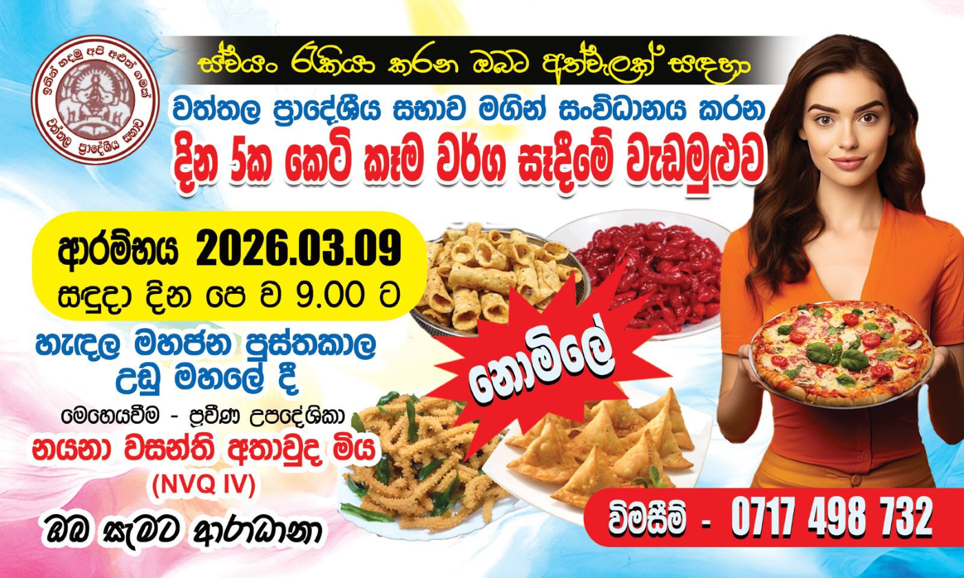 කෙටි කෑම වර්ග සකස් කිරිමේ වැඩසටහන වත්තල ප්රාදේශීය සභාව විසින් සංවිධානය කළ කෙටි කෑම වර්ග සකස් කිරිමේ වැඩසටහන